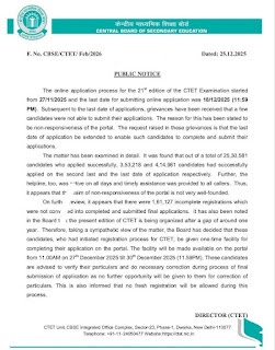 CTET: अधूरा रजिस्ट्रेशन करने वाले 1.61 लाख उम्मीदवारों के लिए फॉर्म पुनः खोला गया, 27 से 30 दिसंबर तक करें सबमिट