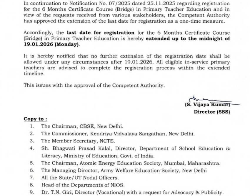 अब 19 जनवरी 2026 तक की जा सकेगी ब्रिज कोर्स के लिए ऑनलाइन रजिस्ट्रेशन