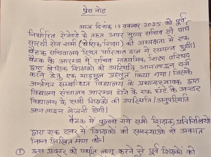 आज की शासन के साथ विभिन्न संगठनों की बैठक जो कि ऑनलाइन अटेंडेंस के संदर्भ में थी,,,, उसका सभी संघों की तरफ से सामूहिक सार….