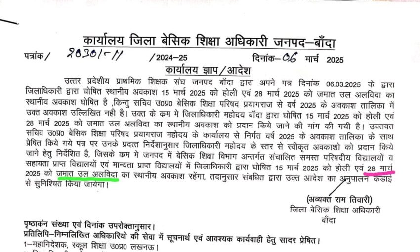 एक ओर जिले में हुआ अवकाश