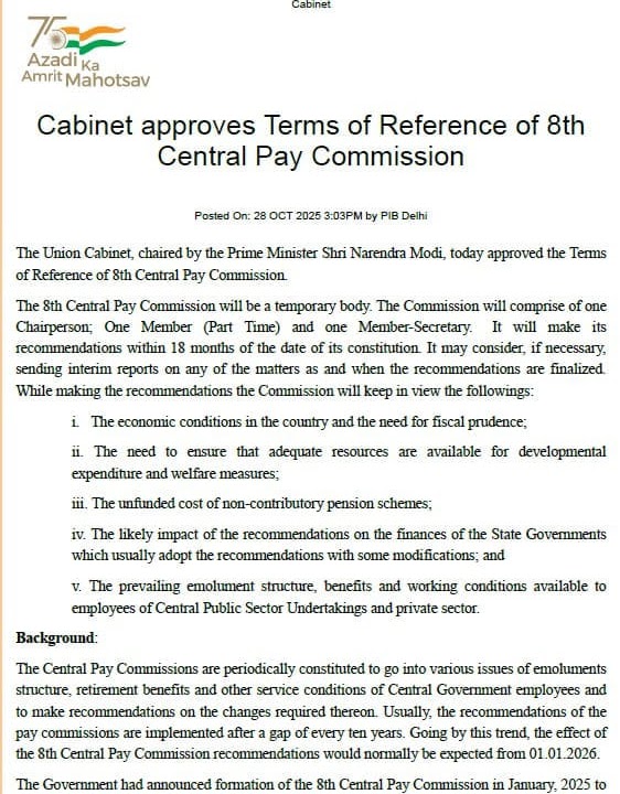 केंद्रीय कैबिनेट के आठवें वेतन आयोग के गठन तथा 18 महीने में रिपोर्ट के संबंध Posted on October 30, 2025 केंद्रीय कैबिनेट के आठवें वेतन आयोग के गठन तथा 18 महीने में रिपोर्ट के संबंध केंद्रीय कैबिनेट के आठवें वेतन आयोग के गठन तथा 18 महीने में रिपोर्ट के संबंध 2025-10-28T18:23:00+05:30 Rating: 4.5 Diposkan Oleh: Primary ka school Source link