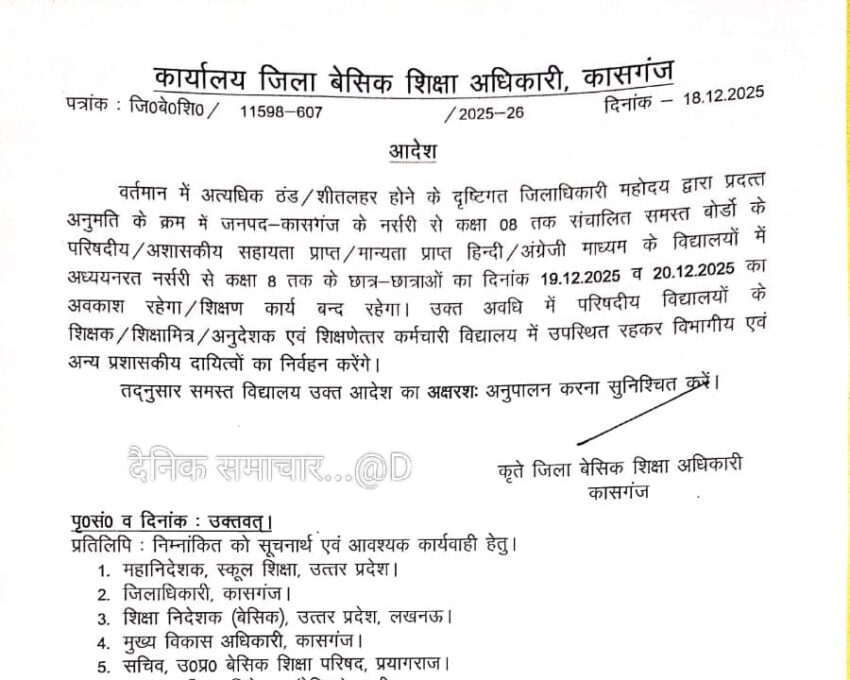 जनपद में 20 दिसम्बर तक का अवकाश परंतु शिक्षको के लिए है ये शर्त Posted on December 18, 2025 जनपद में 20 दिसम्बर तक का अवकाश परंतु शिक्षको के लिए है ये शर्त जनपद में 20 दिसम्बर तक का अवकाश परंतु शिक्षको के लिए है ये शर्त 2025-12-18T21:33:00+05:30 Rating: 4.5 Diposkan Oleh: Primary ka school Source link