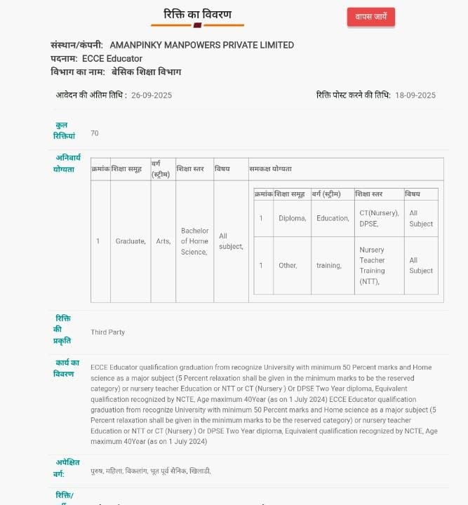 जिले में ECCE EDUCATOR भर्ती का विज्ञापन जारी Posted on September 22, 2025 ❇️ECCE EDUCATOR: कासगंज रिक्तियां: 70 अंतिम तिथि: 26 सितंबर जिले में ECCE EDUCATOR भर्ती का विज्ञापन जारी 2025-09-21T22:02:00+05:30 Rating: 4.5 Diposkan Oleh: Updatemarts Source link