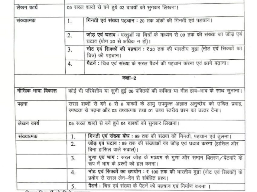 डी०एल०एड० प्रशिक्षुओं के माध्यम से 15 जनवरी 2026 से 15 मार्च 2026 तक आयोजित कराये जाने वाले आकलन हेतु कक्षा 1 व 2 के लिए निर्धारित दक्षतायें