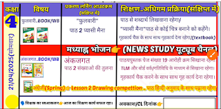 दिनांक 21 से 27 अप्रैल , 2025 कक्षा- 04 की भरी हुई शिक्षक डायरी , देखें