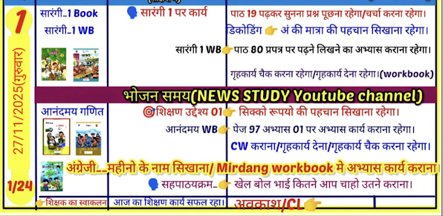 दिनांक 27 नवंबर 2025 कक्षा- 01, 02, 03, 04, 05 की भरी हुई शिक्षक डायरी , देखें
