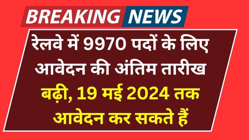 रेलवे में 9970 पदों के लिए आवेदन की अंतिम तारीख बढ़ी, अब 19 मई तक करें आवेदन