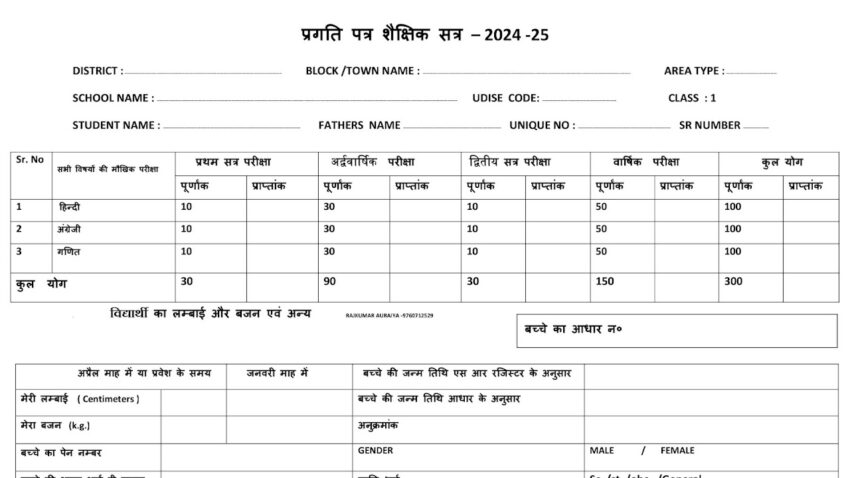 संशोधित होलिस्टिक कार्ड कक्षा- 1 से 8 तक, Download करे