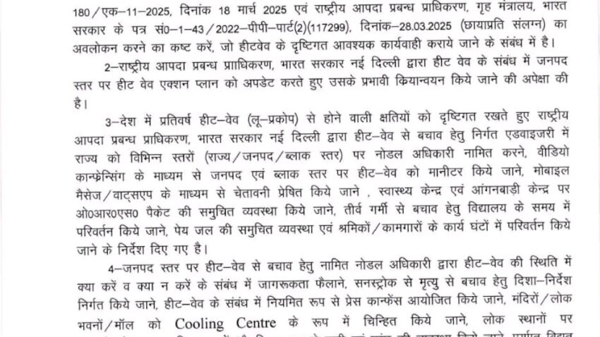 *हीटवेव के अन्तर्गत आवश्यक कार्यवाही कराये जाने के संबंध में।*
