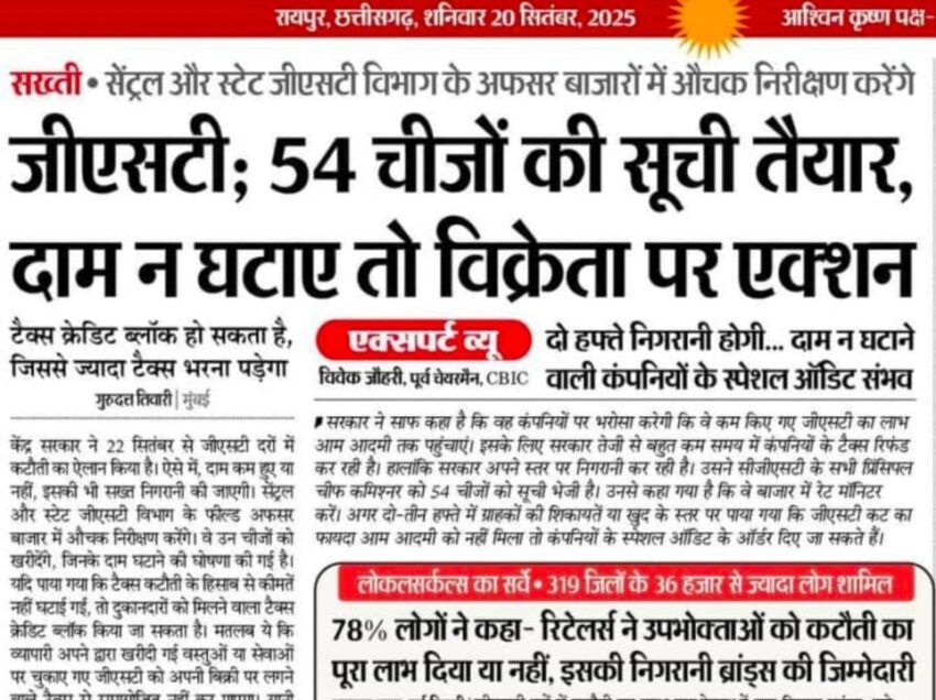 GST — 54 चीजों की सूची जारी दाम न घटाए तो दुकान दार पर होगी कार्यवाही एक्शन 22 तारीख से लागू होगा नई कम दाम वाली सामनों की रेट