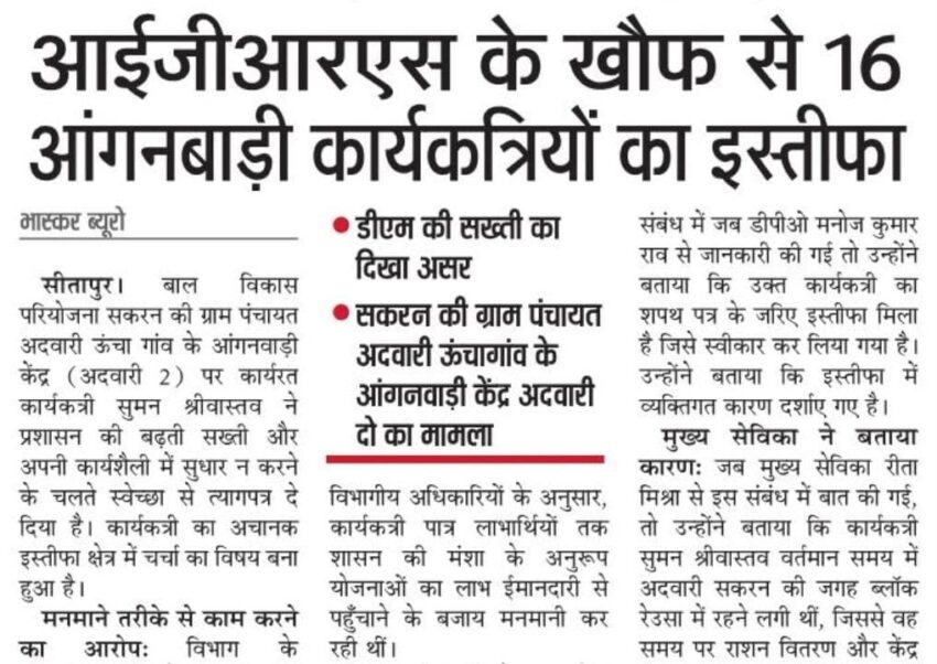 IGRS के खौफ़ से 16 आंगनबाड़ी कार्यकत्रियों का इस्तीफा